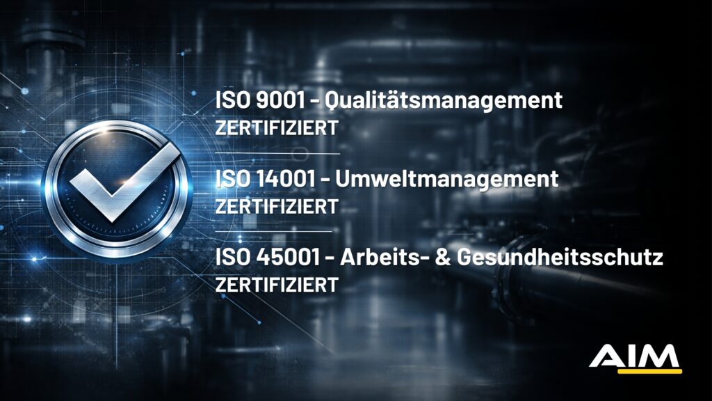 Die AIM Technical Solutions wurde erfolgreich zertifiziert und erfüllt nun auch offiziell die Anforderungen der internationalen Standards ISO 9001, ISO 14001 und ISO 45001.